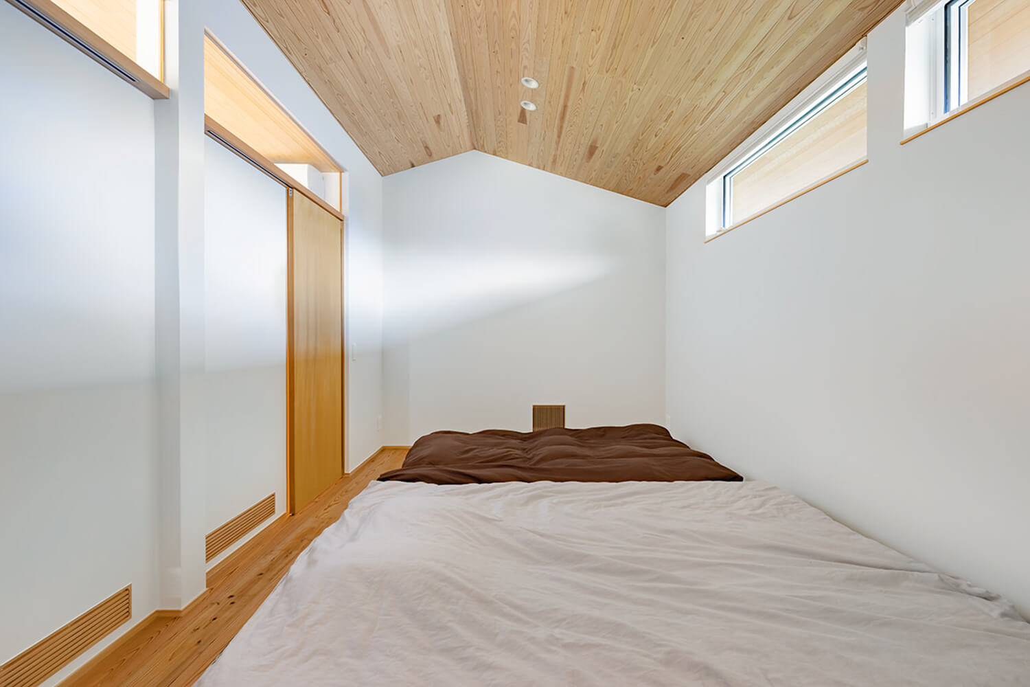 2階の個室。現在は家族の寝室として利用しているが、子供たちが成長したら部屋を分けてそれぞれの個室にする予定。