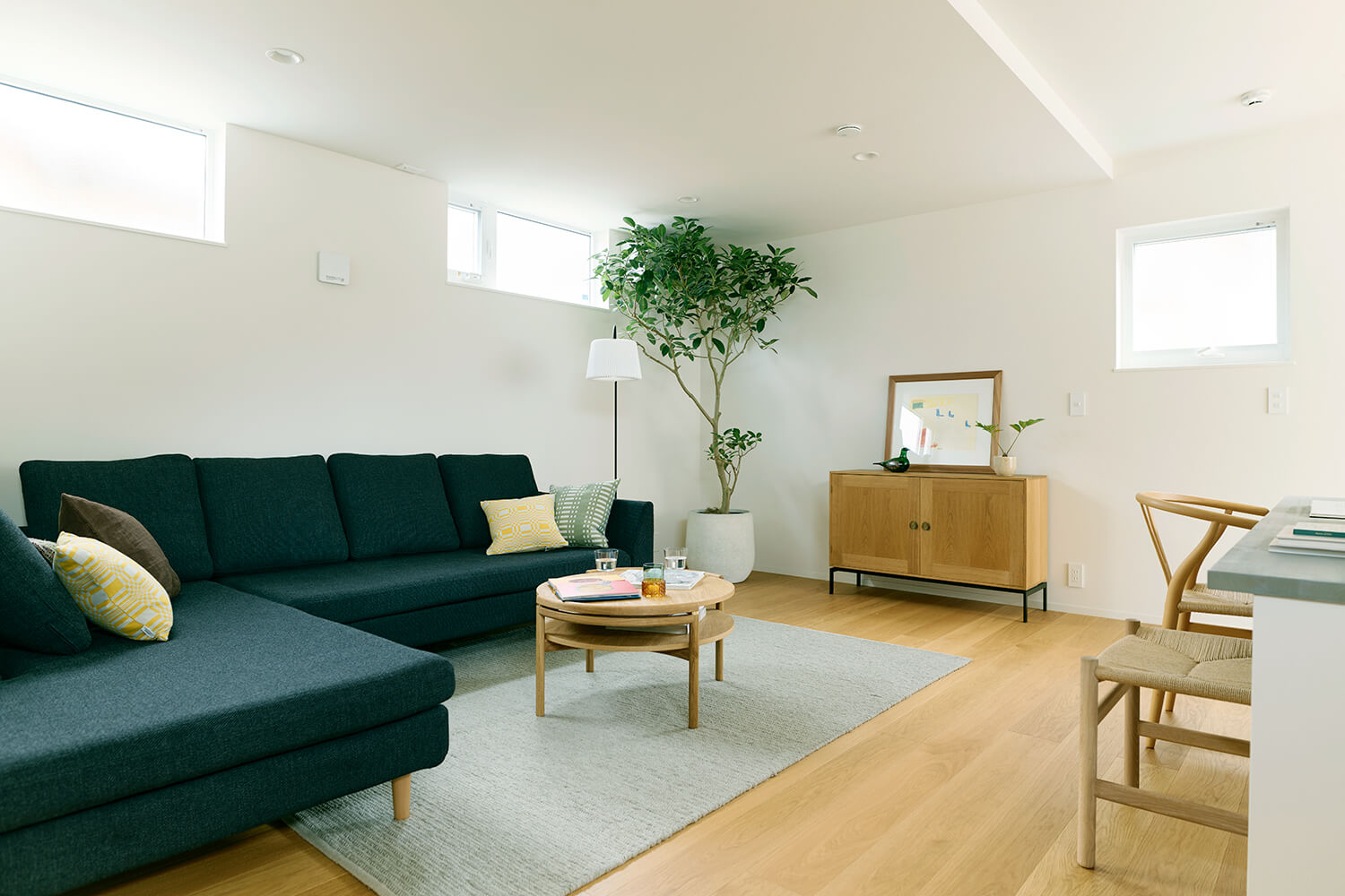 木の質感とクリーンな空間美が際立つ北欧インテリアの家を舞台に、家族の個性が輝いていく。