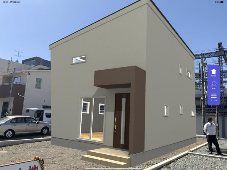 隣の2区画でも、ARによる仮想住宅の見学が可能です。更地の状態でも、隣地との距離感や窓からの景色などが確認しやすい体験会です。