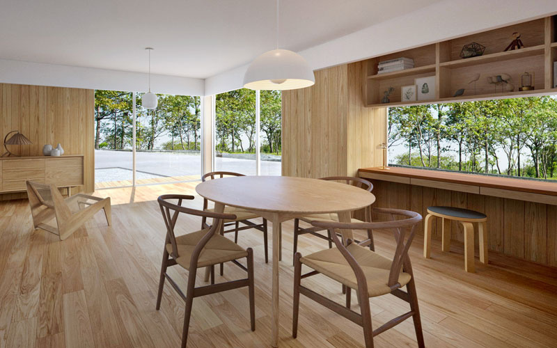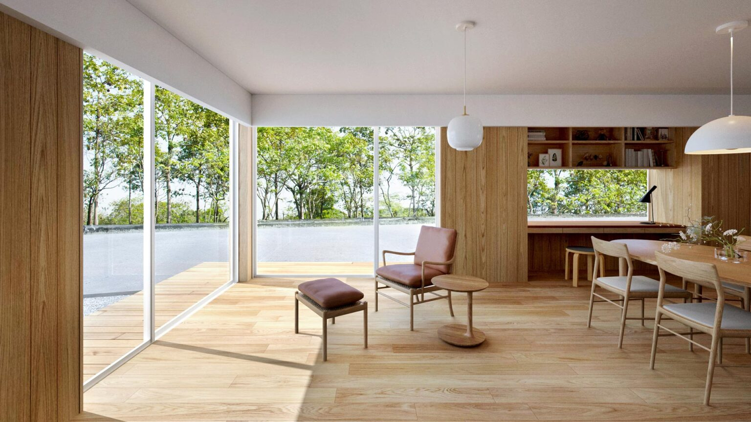 概要:窓の外に広がる自然をLDKの一部として取り込む、「借景」の家が完成しました。