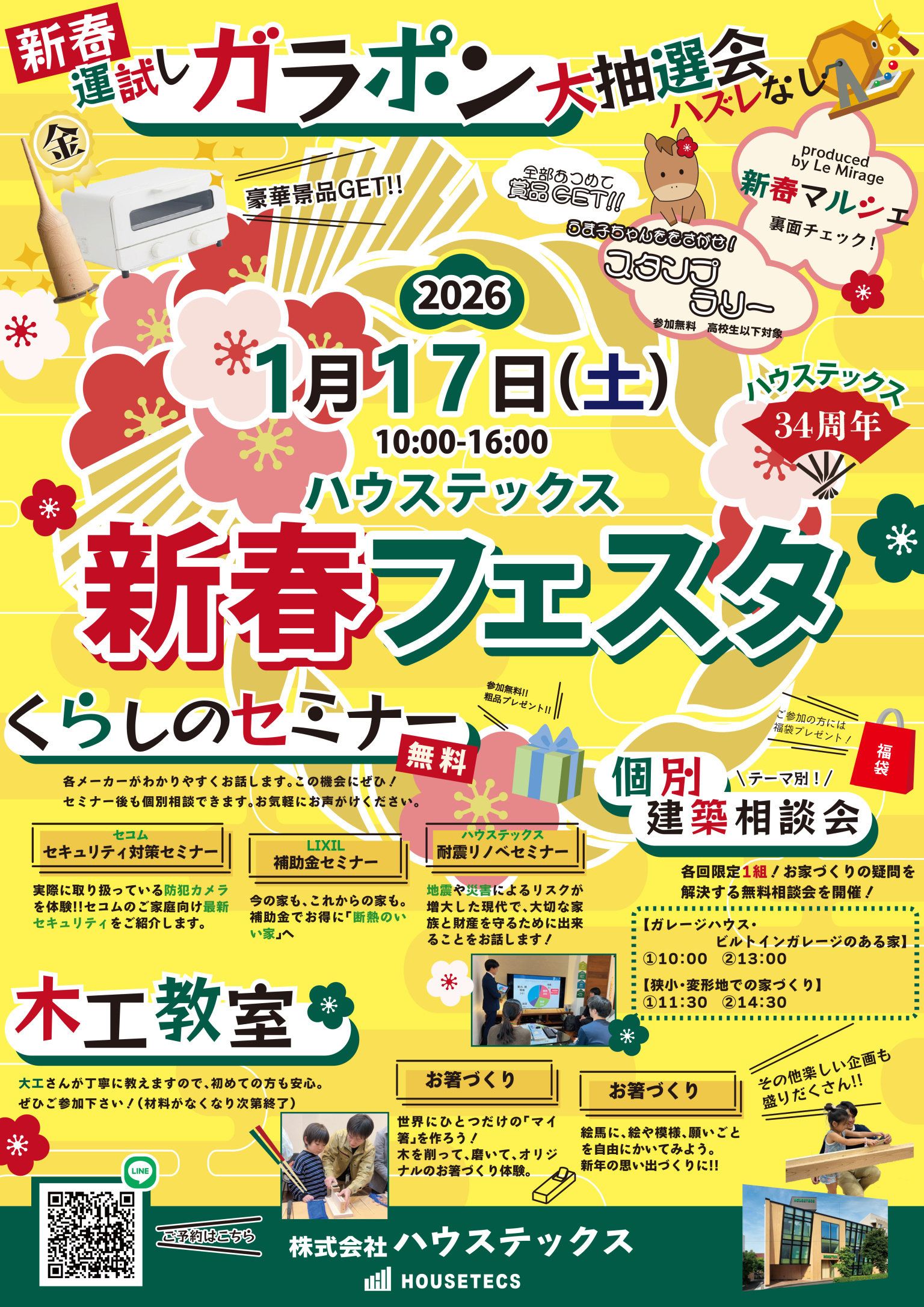 概要:新年初のイベントは、住まいと暮らしを楽しむ 『ハウステックス新春フェスタ』!!