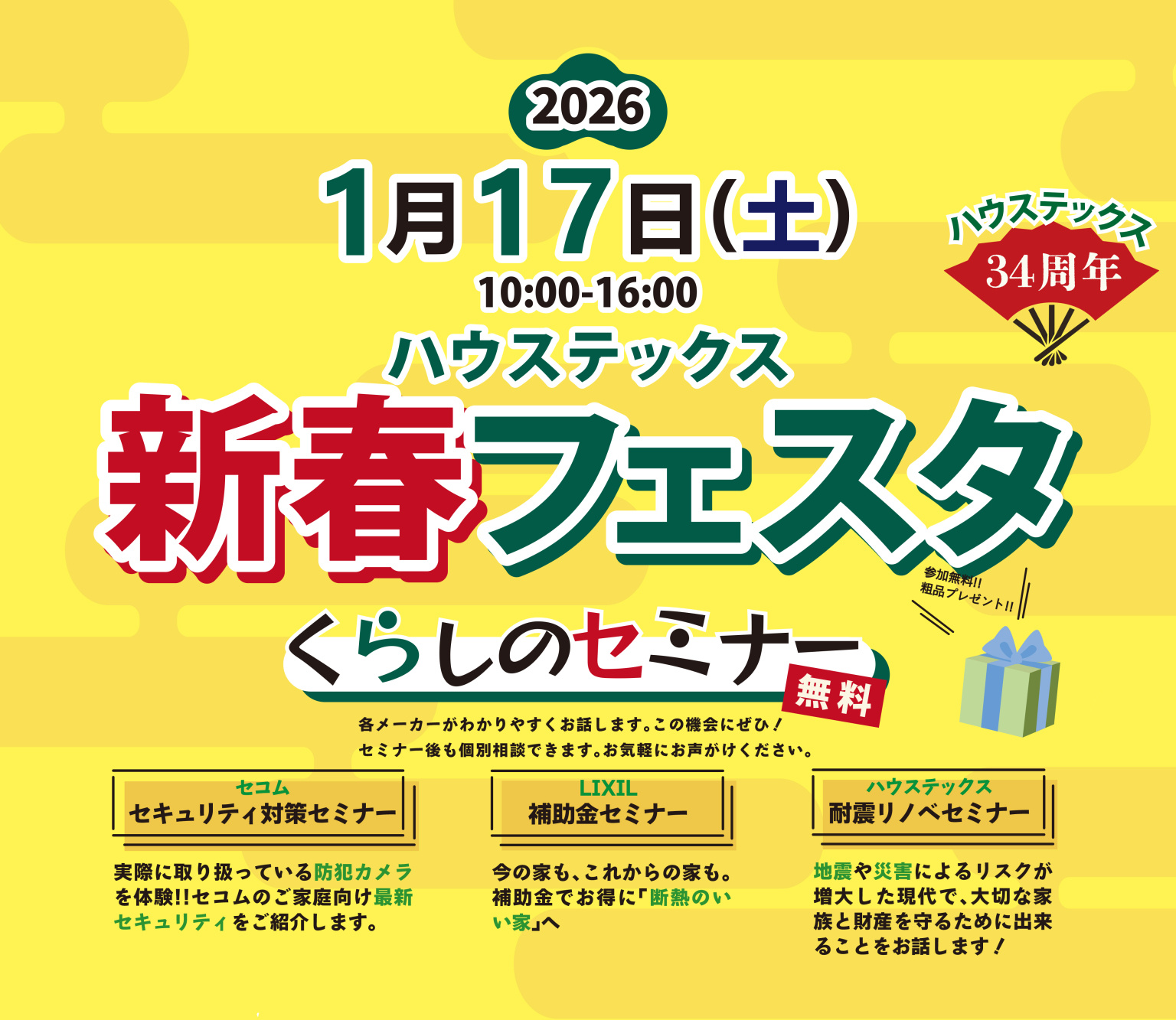 同日はハウステックス新春フェスタを開催しており、館内全体でたくさんの催し物があります。大人気の木工教室のほか、簡単お料理教室・たくさんのワークショップ・できるこのチャンスにぜひお越しください。