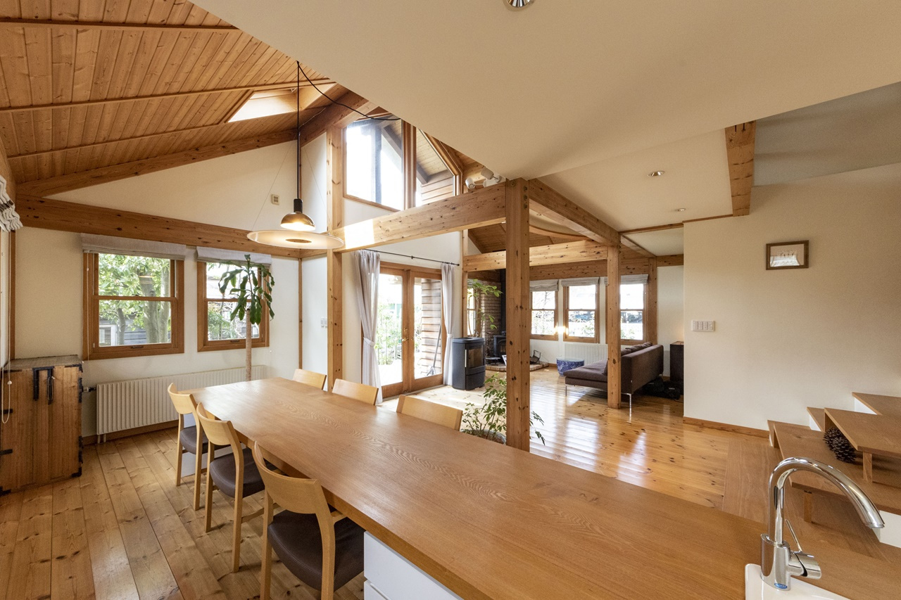 このモデルハウスでは、キリガヤで使用しているウッドサイディングや、内装材などがどのように変化するのかをご体感いただくことができます。