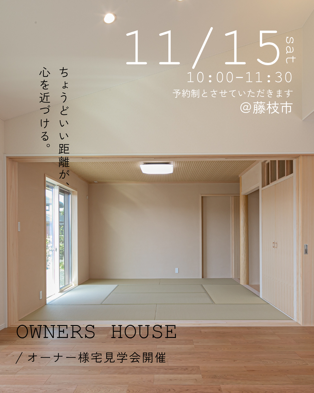 概要:子育て世帯におすすめ!オーナー様に直接気になることを質問できる絶好のチャンス!15日@藤枝市で、実際の住まいを見学できるオーナー様宅見学会開催します。部分共有型二世帯住宅を体感してください。親世代との生活を視野に入れている方にぴったりです。また、お住まいに関する気になる質問を直接オーナー様や専門家に尋ねられる貴重な機会です。この機会にぜひご参加ください。事前予約制ですので、お早めのご予約をお待ちしております。