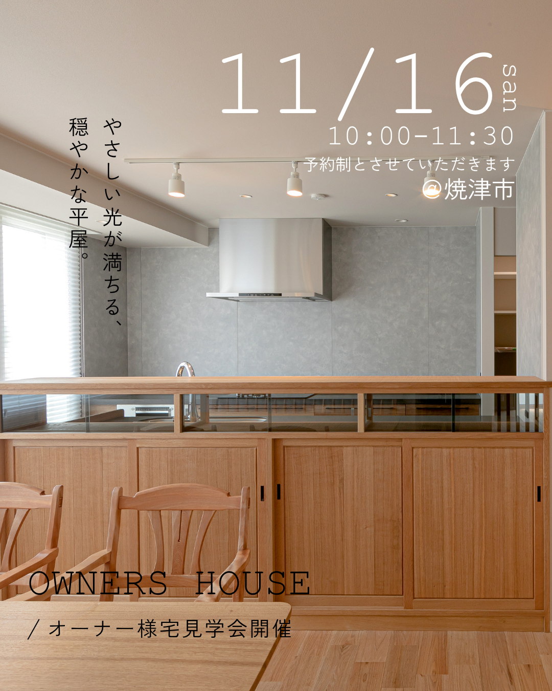 概要:子育て世帯におすすめ!オーナー様に直接気になることを質問できる絶好のチャンス!16日@焼津市で、実際の住まいを見学できるオーナー様宅見学会を開催します。平屋の魅力を感じながら、最新の住宅設備や設計コンセプトを体感してください。平屋に興味のある方にぴったりです。また、お住まいに関する気になる質問を直接オーナー様や専門家に尋ねられる貴重な機会です。この機会にぜひご参加ください。事前予約制ですので、お早めのご予約をお待ちしております。