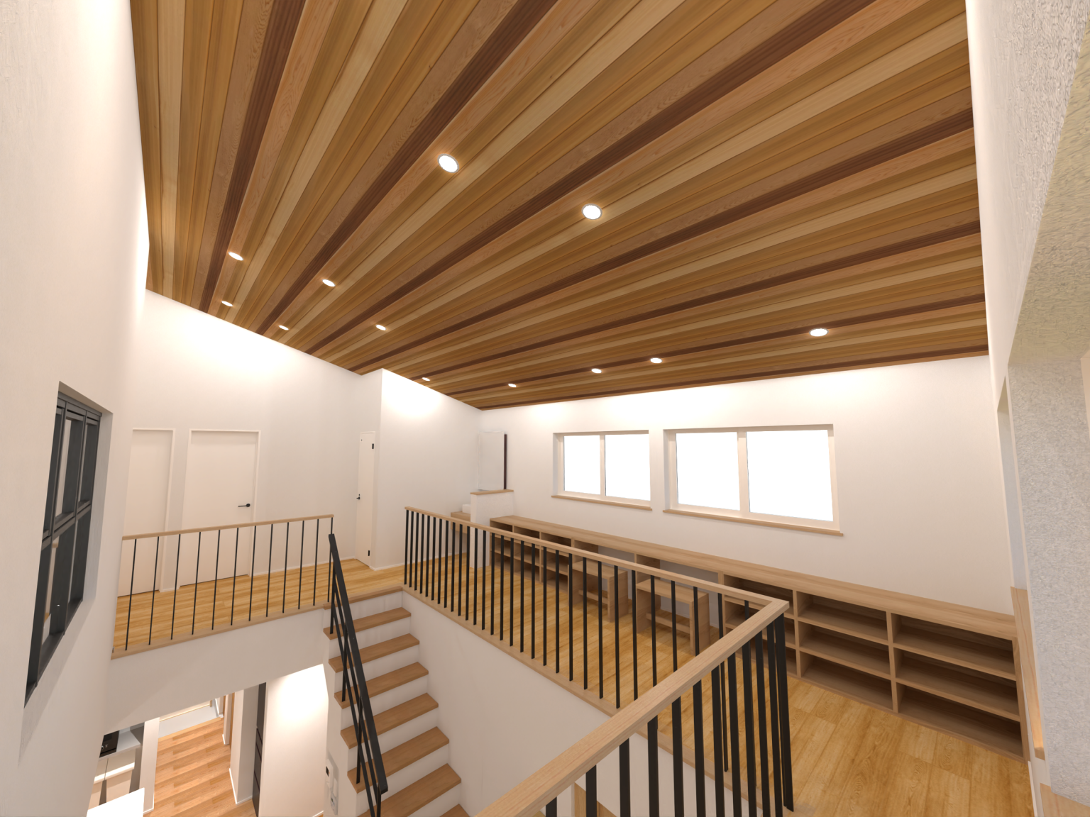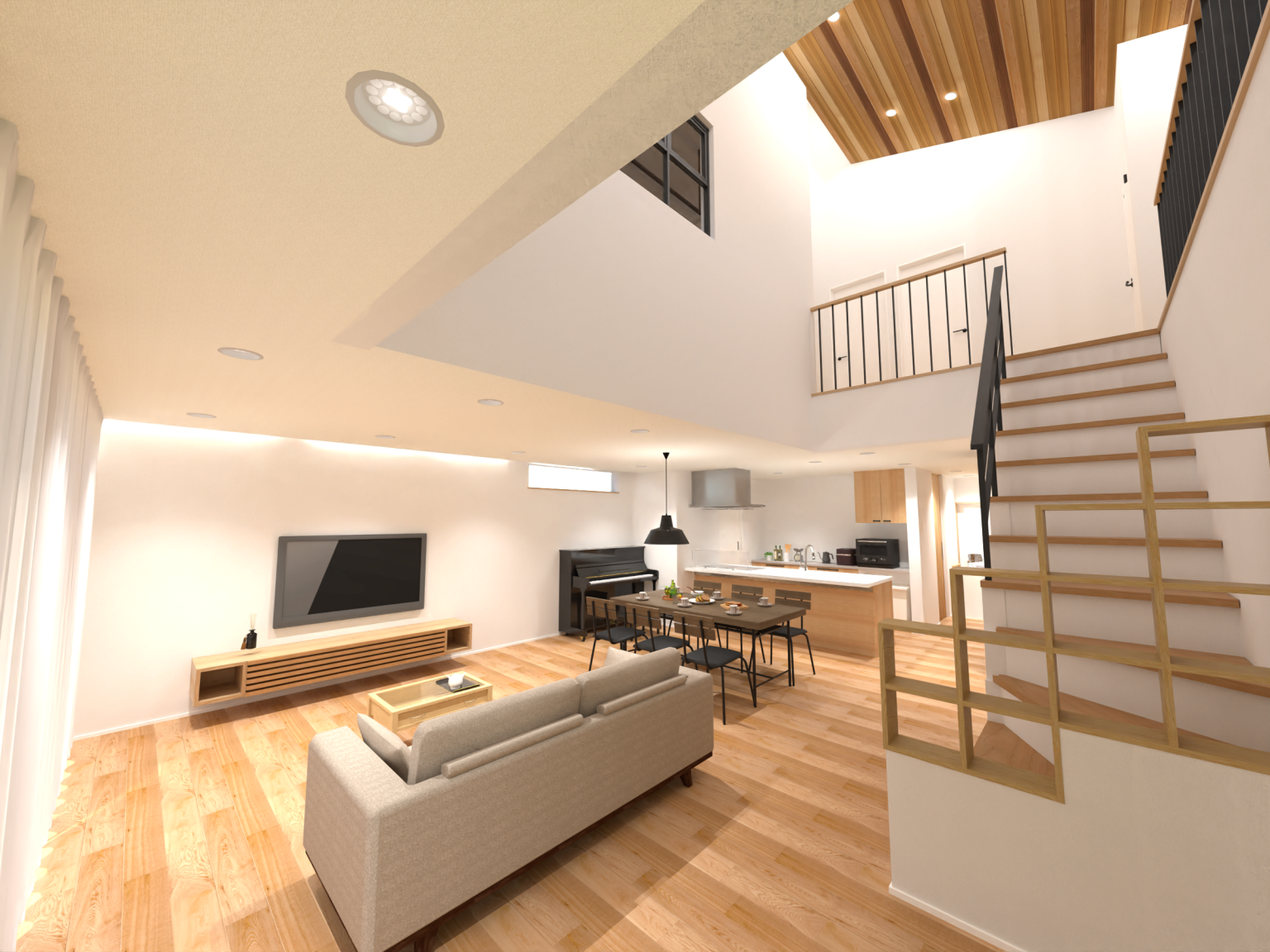 「吹き抜けでも暑くない、寒くない。家族がつながる回遊動線の大空間の家」がテーマです。